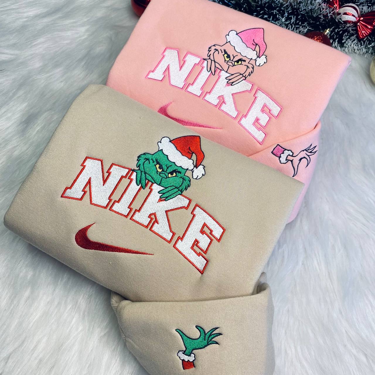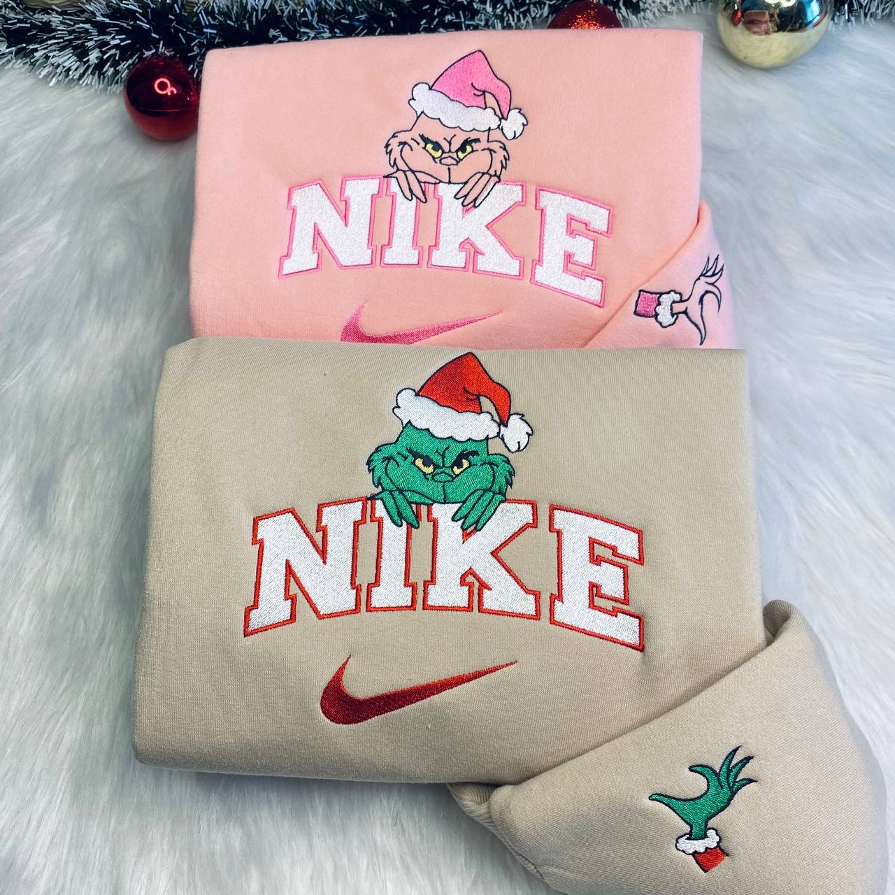 Christmas Nike Grinch Couple Embroidered Sweatshirt, Nike Matching Embroidered Hoodies