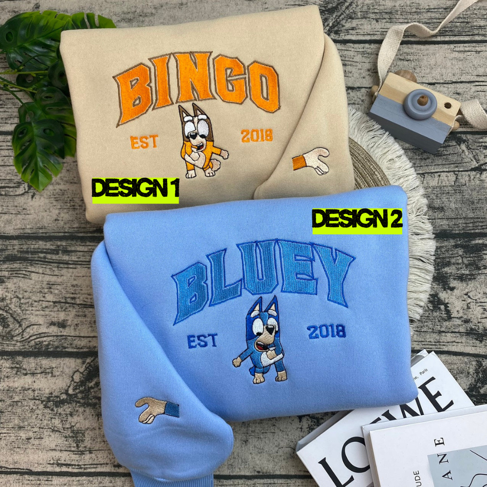 Cute Bingo And Bluey Matching Embroidered Sweatshirts, Hoodie, T-shirt