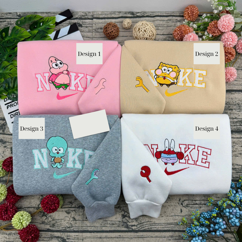 Cute Chibi SpongeBob SquarePants Close Friends Embroidered Sweatshirts, Gift For Your Friends