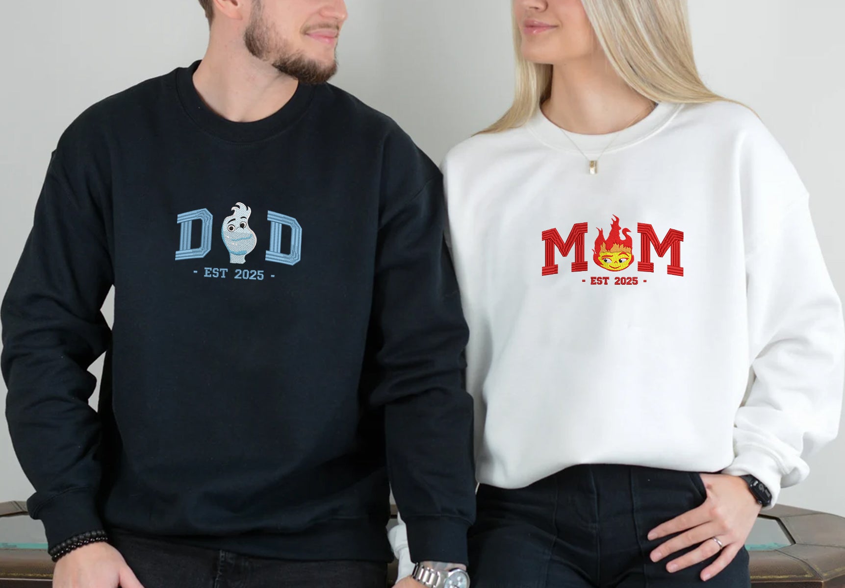 Dad & Mom Elemental Embroidered Sweatshirt, Hoodie, T-shirt