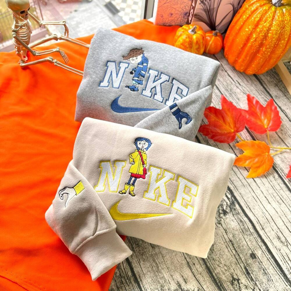 Spooky Corpse Bride Emily And Victor Nike Embroidered Sweatshirts, Halloween Sweatshirts, Nike Matching Embroidery