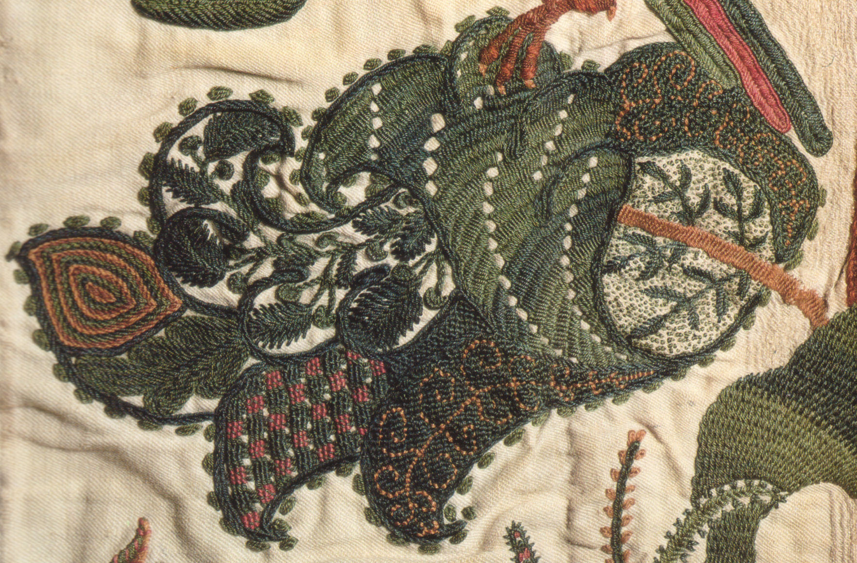 Crewel embroidery is a form of hand-stitching that uses wool threads on linen or cotton fabric. It is known for its flowing designs, often inspired by nature, including flowers, birds, and vines. This technique dates back over a thousand years and is still practiced in regions like Kashmir in India and the United Kingdom.